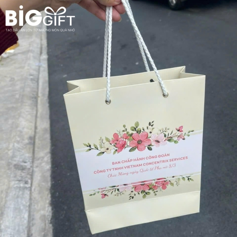 Túi giấy không chỉ giúp người nhận dễ dàng mang theo món quà mà còn là một phương tiện mở rộng không gian thương hiệu. Một chiếc túi giấy được thiết kế đồng bộ với hộp quà sẽ tạo nên một bộ nhận diện hoàn chỉnh, chuyên nghiệp.