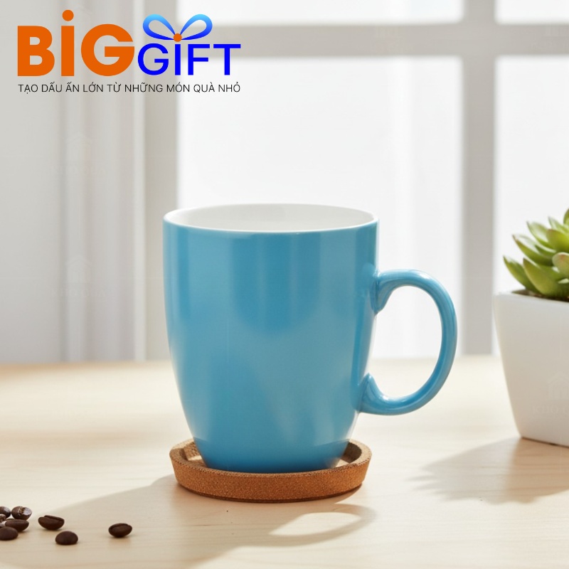 Mẫu ly sứ in logo quà tặng này sở hữu thiết kế dáng bầu thanh lịch và màu men xanh tươi sáng. Khi được in logo, chiếc cốc trở thành một công cụ marketing nội bộ hiệu quả, giúp vun đắp tinh thần đoàn kết. Món quà này lan tỏa hình ảnh một thương hiệu biết chăm lo cho đời sống nhân viên, tạo sự gắn bó và đồng bộ chuyên nghiệp trong tập thể.
