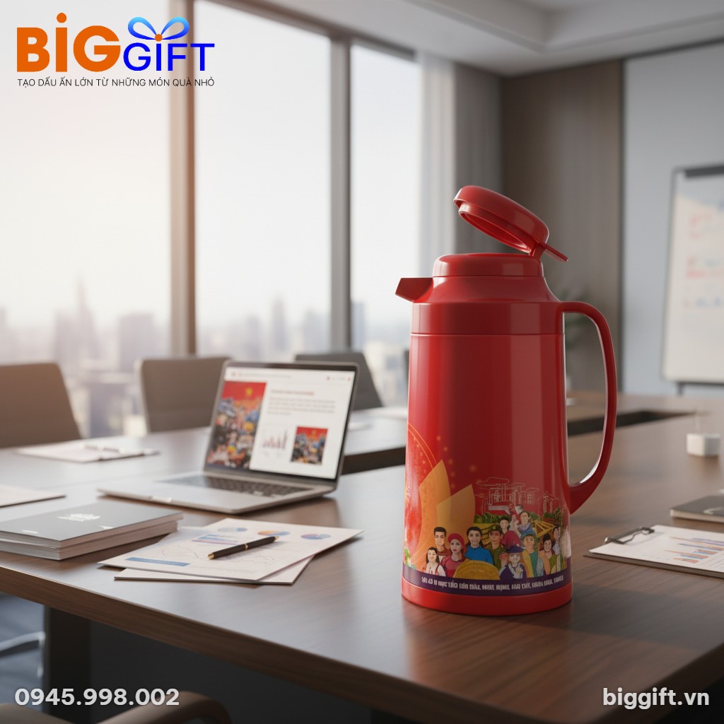 Phích giữ nhiệt in logo quà tặng PGN01: Món quà Đại hội tự hào & gắn kết
