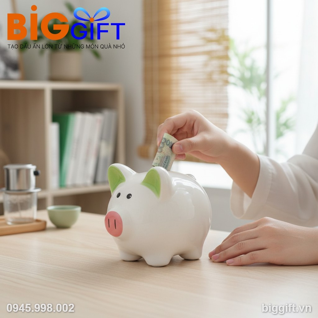 Heo đất quà tặng in logo là một lựa chọn mang thông điệp tích cực và gần gũi, lý tưởng để xây dựng niềm tin và mối quan hệ bền chặt trong ngành ngân hàng. Tặng heo đất cho khách hàng là cách ngân hàng tinh tế khuyến khích thói quen tiết kiệm, thể hiện sự quan tâm đến tương lai tài chính của họ. Món quà trở thành lời nhắc nhở hữu hình về mục tiêu tích lũy, đồng thời củng cố hình ảnh một tổ chức tài chính đáng tin cậy.