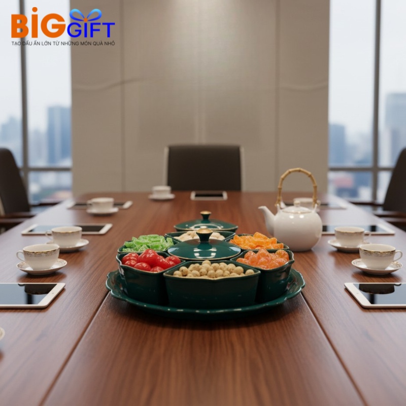Quà Tặng BiGGift tự hào là đối tác chuyên cung cấp các giải pháp khay mứt Tết in logo số lượng lớn cho các đơn vị tổ chức, cơ quan, doanh nghiệp,…. Chúng tôi thấu hiểu sâu sắc các yêu cầu khắt khe của doanh nghiệp trong mùa quà Tết, đặc biệt là về chất lượng gốm sứ đồng bộ, kỷ luật về tiến độ giao hàng và một quy trình làm việc chuyên nghiệp, rõ ràng.
