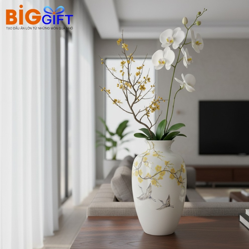 Bình cắm hoa gốm sứ quà tặng in logo LHGS04: Món quà Tết tinh tế, đẳng cấp và thịnh vượng