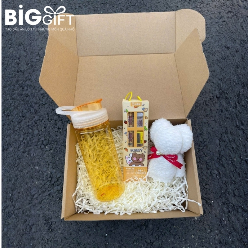 - Túi giấy: Sẵn in ấn 1 màu trắng, hoàn thiện bộ quà tặng một cách chuyên nghiệp.