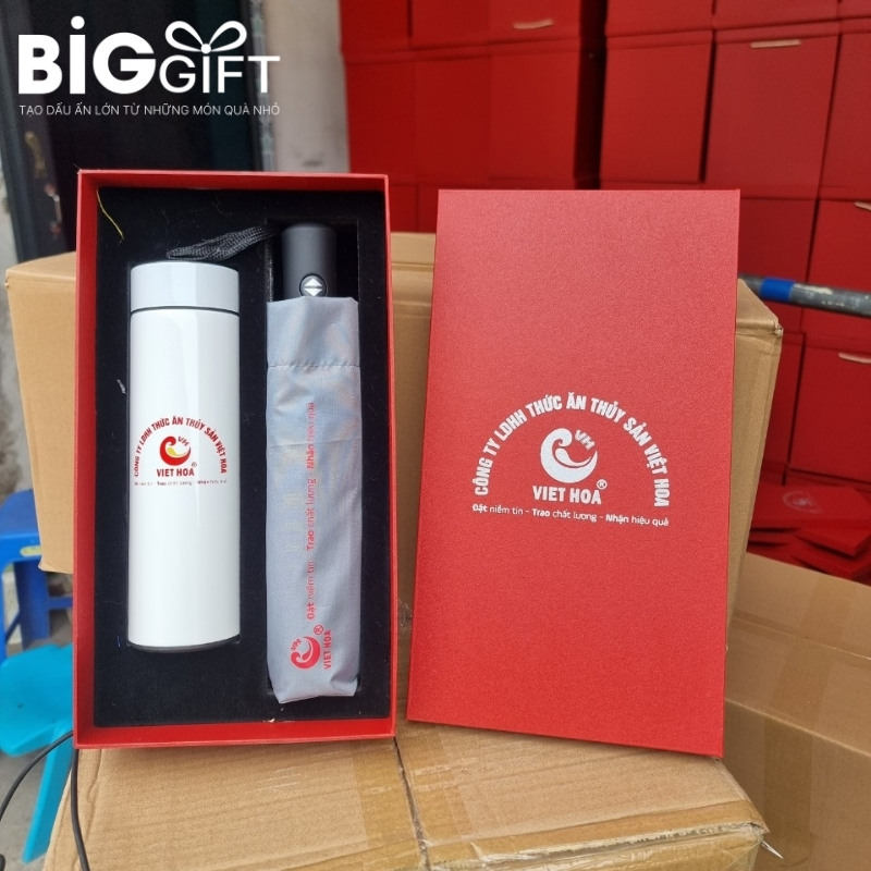 – Set ô dù – bình giữ nhiệt: Phù hợp với điều kiện thời tiết Việt Nam, ô dù và bình giữ nhiệt là những vật phẩm hữu ích. Bộ quà tặng này thể hiện sự quan tâm của doanh nghiệp đến sức khỏe và tiện nghi của người nhận.