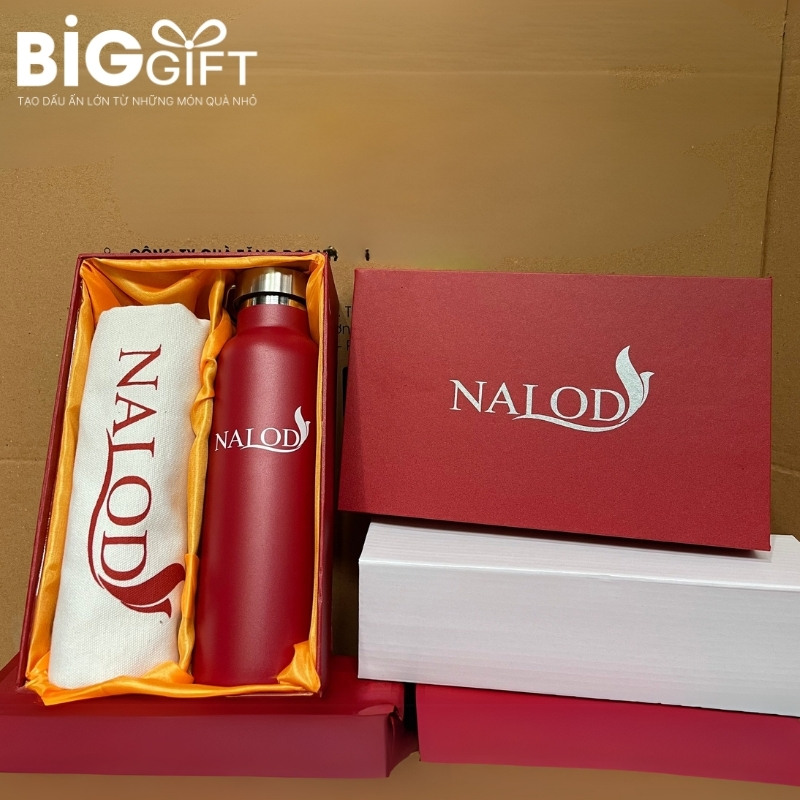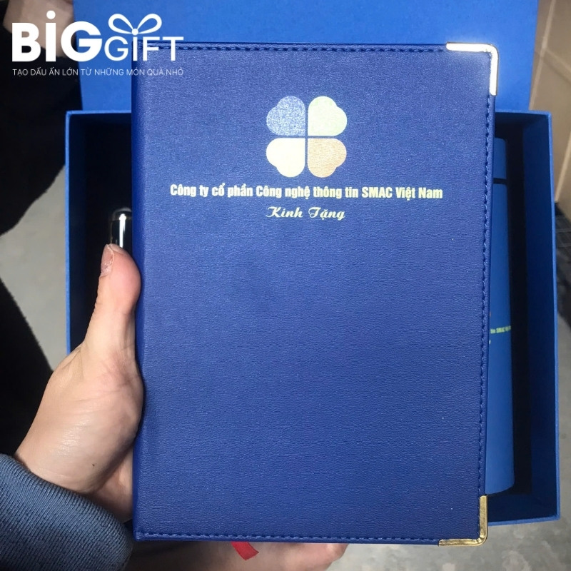 – Set sổ da – bút ký – bình giữ nhiệt: Nâng cấp từ set cơ bản, bổ sung bình giữ nhiệt giúp tăng tính tiện ích. Bình giữ nhiệt là món đồ dùng hàng ngày, giúp thương hiệu hiện diện liên tục trong đời sống người nhận.