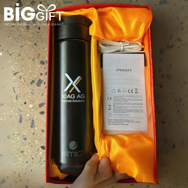 Sau quá trình tư vấn chuyên sâu, BigGift.vn đã đề xuất và thực hiện bộ quà tặng thương hiệu bao gồm bình giữ nhiệt và sạc dự phòng, hai vật phẩm có giá trị sử dụng cao trong môi trường làm việc hiện đại. Việc lựa chọn sản phẩm này không chỉ dựa trên tính ứng dụng mà còn phù hợp với hình ảnh một doanh nghiệp công nghệ.