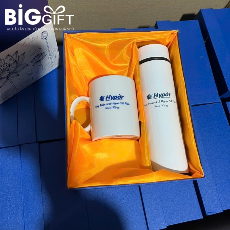 – Set ly giữ nhiệt – sổ da: Sự kết hợp giữa một vật phẩm sử dụng cá nhân và một vật phẩm văn phòng, phù hợp với mọi đối tượng. Ly giữ nhiệt có khả năng in ấn đa dạng, tạo dấu ấn thương hiệu riêng biệt.