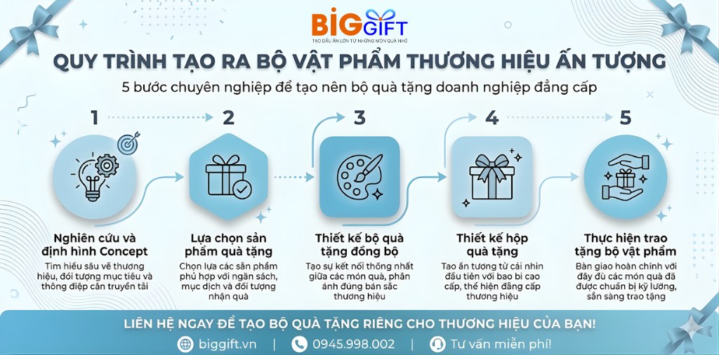 Bài viết này sẽ hướng dẫn bạn toàn diện từ định nghĩa, quy trình 5 bước để tạo ra một bộ vật phẩm thương hiệu chuyên nghiệp, gợi ý các bộ quà tặng được ưa chuộng tại BigGift.